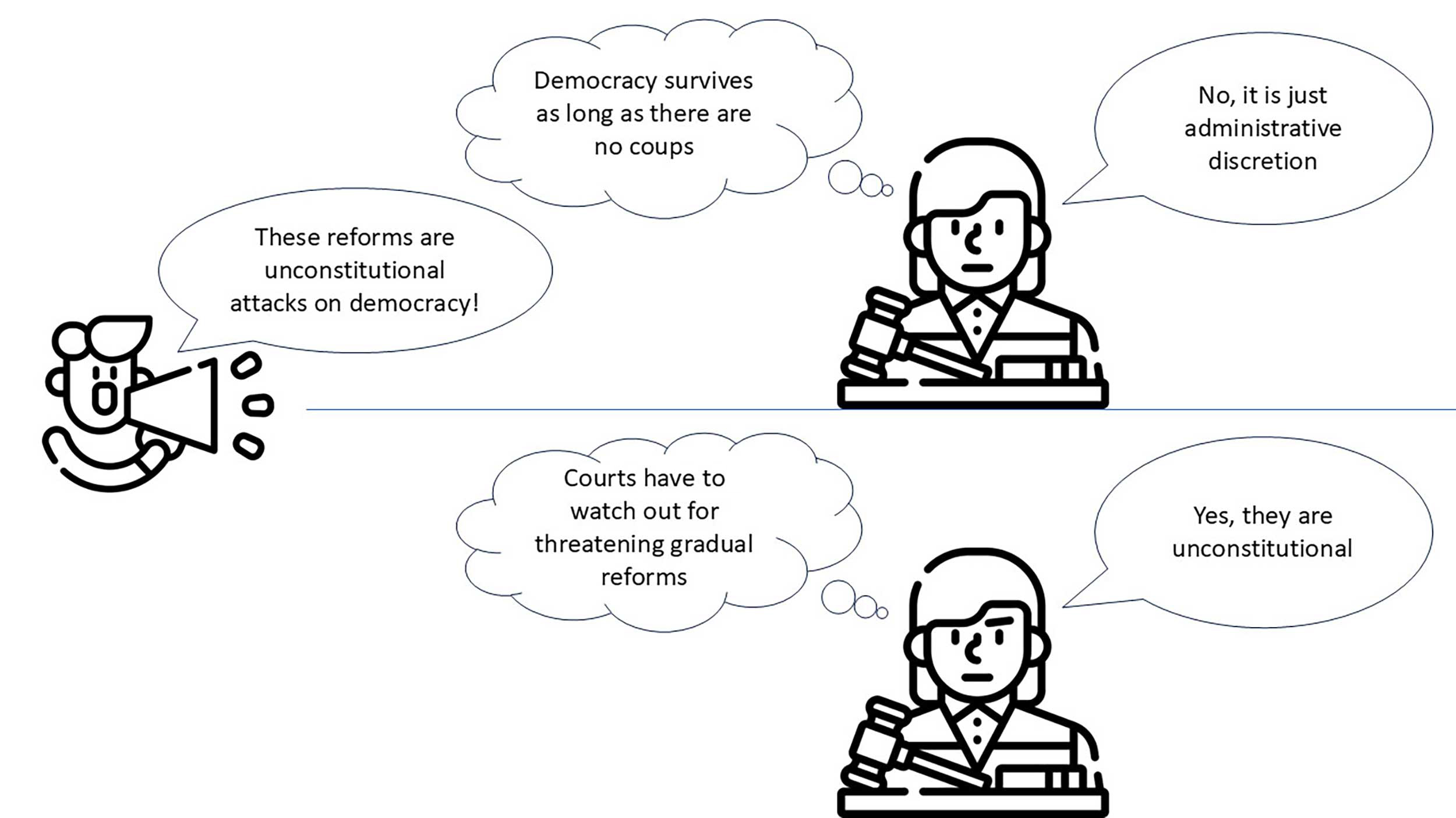 “The same judges can respond differently to the same legal arguments depending on whether they think gradual reforms can threaten democracy.”