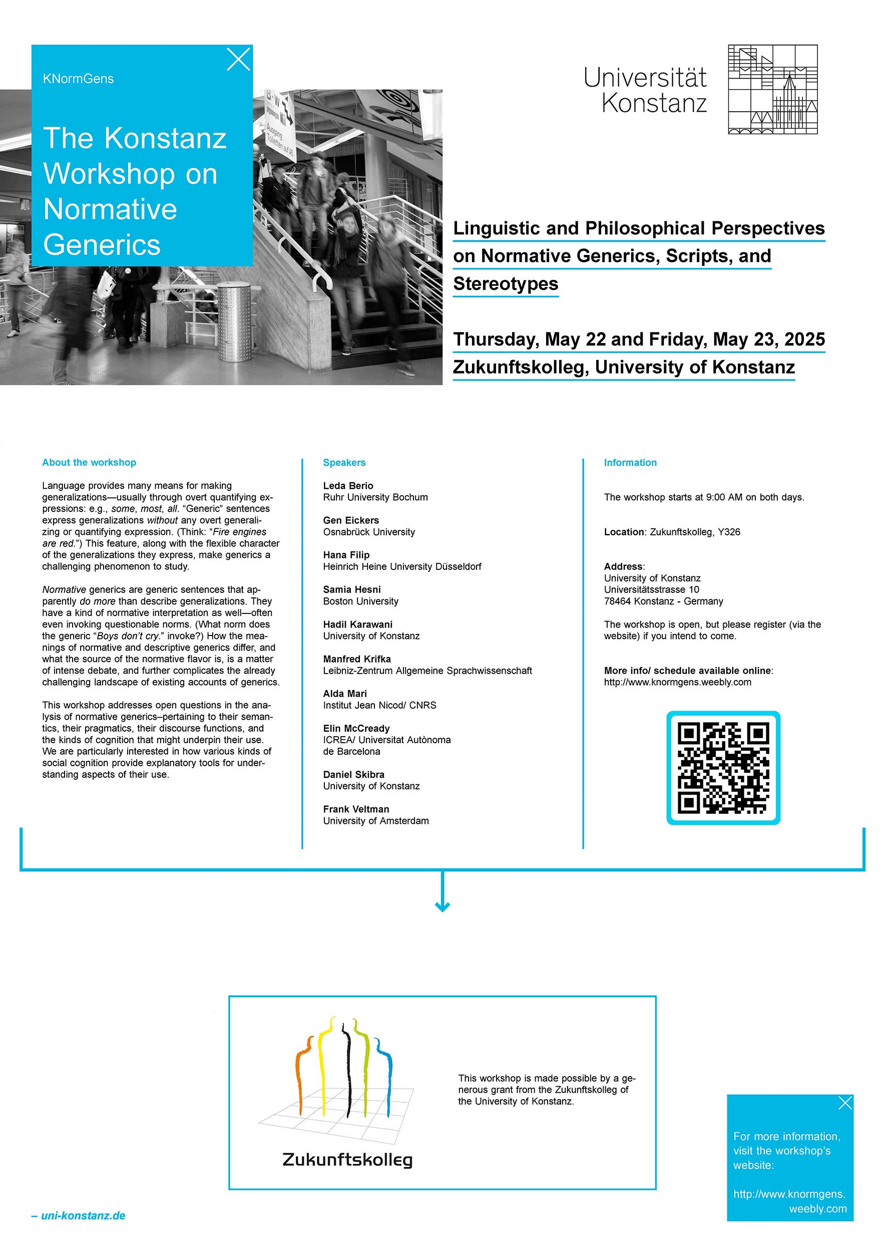 “Konstanz 2025 Workshop on Normative Generics: Linguistic and Philosophical Perspectives of Normative Generics, Scripts and Stereotypes”.
